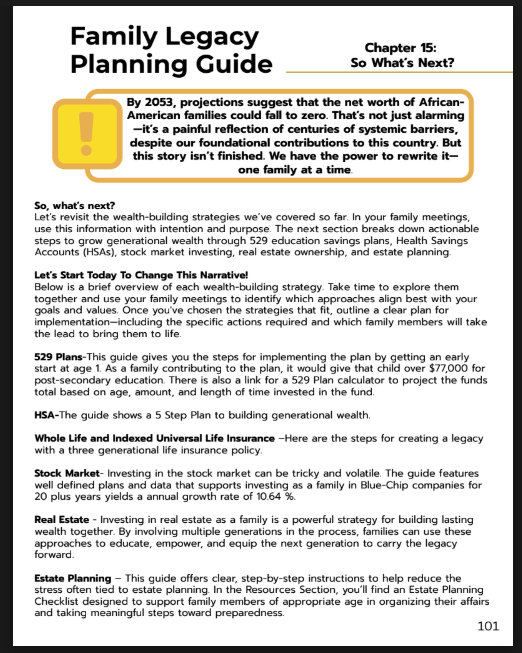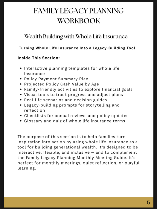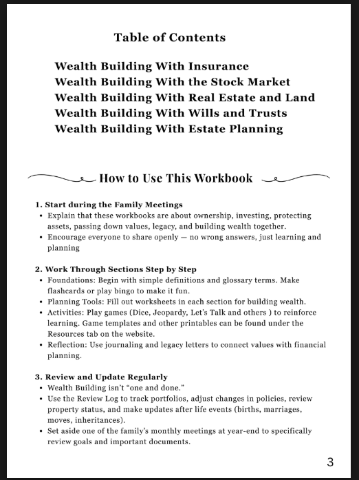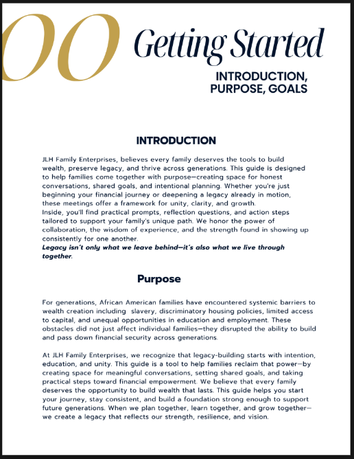 The Family Legacy Planning Guide and Workbook are great tools together for families to start building their legacy and wealth building journey!